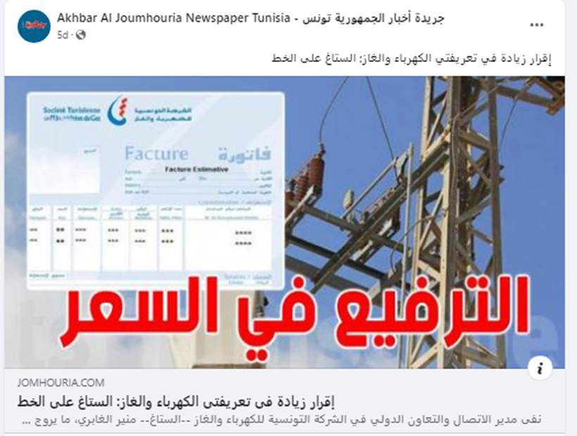 نشرت صفحة “أخبار الجمهورية على موقعها الإلكتروني وصفحتها على فايسبوك خبر مفاده “الترفيع في أسعار الكهرباء والغاز”